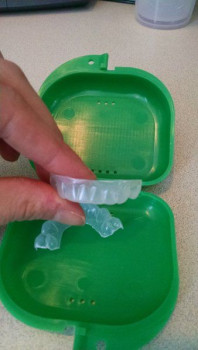Bây giờ mình đang đeo niềng đến ngày thứ hai và cảm thấy răng cũng bị nhức giống như khi dùng niềng kim loại trước đây. Mình có khả năng chịu đau khá tốt nhưng lúc phải đeo niềng lại sau mỗi lần đánh răng hay ăn uống thì vẫn thấy khá khó chịu. Bác sĩ của mình khuyên là sau khi lắp niềng lên răng thì nên dùng ngón tay đẩy mạnh khay niềng để đảm bảo chúng khít với hàm răng. Đây là lúc mình thấy đau nhất nhưng là bước cần thiết để khay niềng ôm sát với răng hơn, không bị lộ ra một phần ở bên dưới răng.