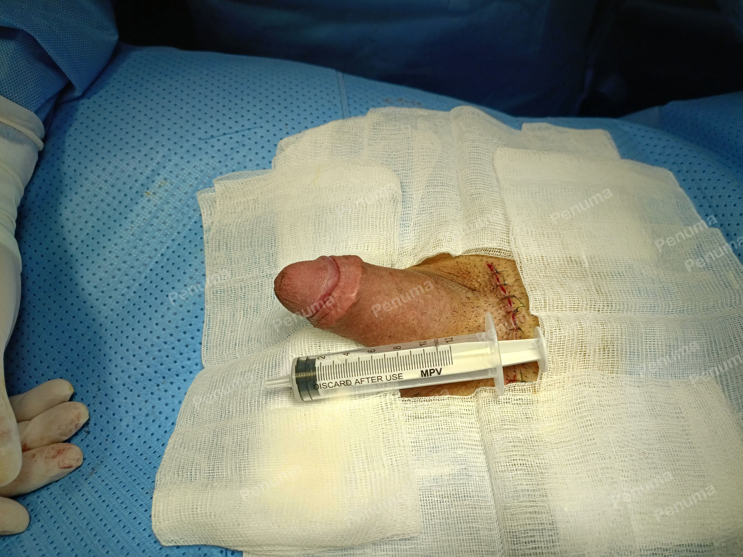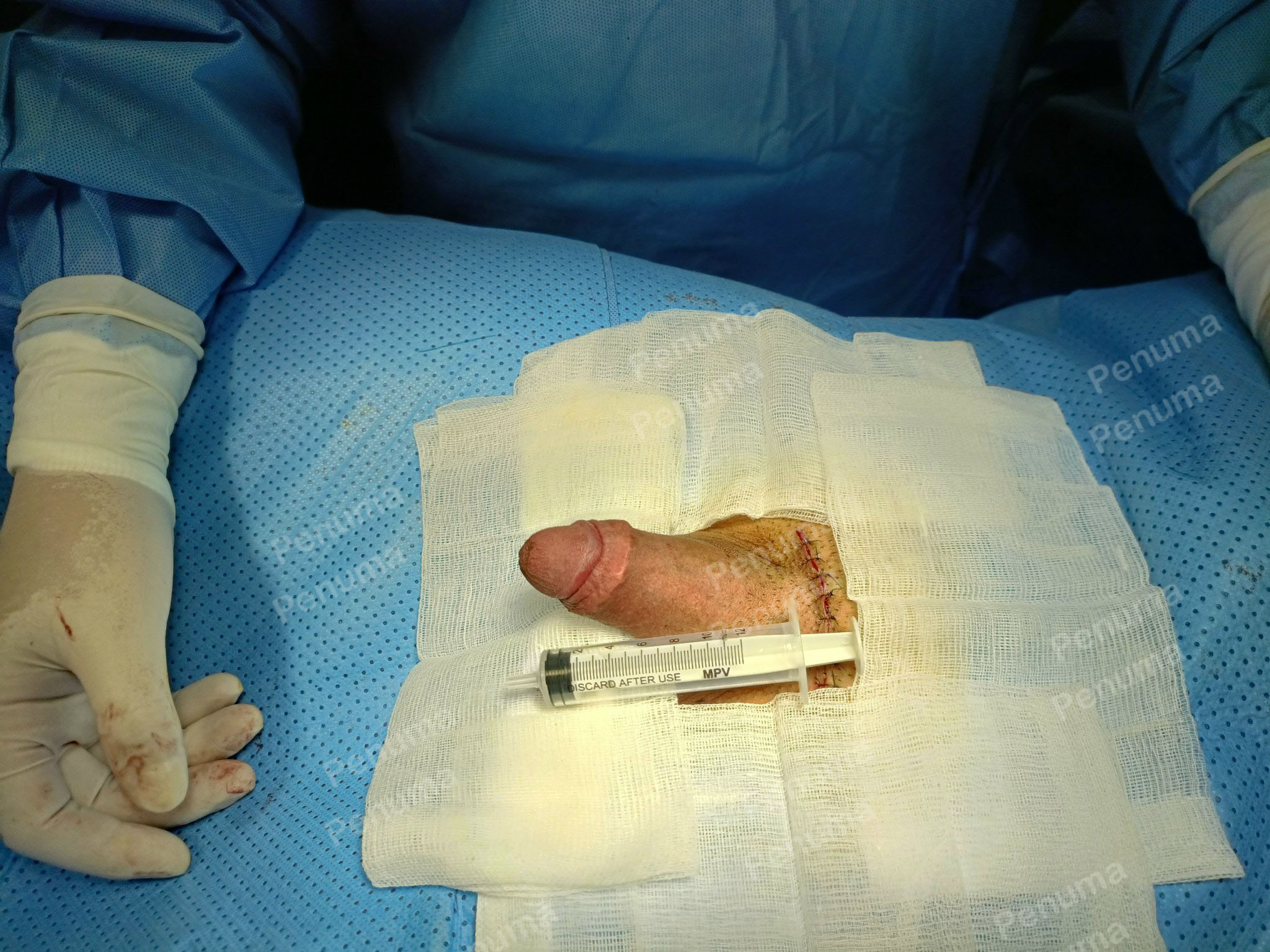Độn dương vật bằng mô da nhân tạo, đường mổ ở mu, khách hàng 32 tuổi HCM - ca 84