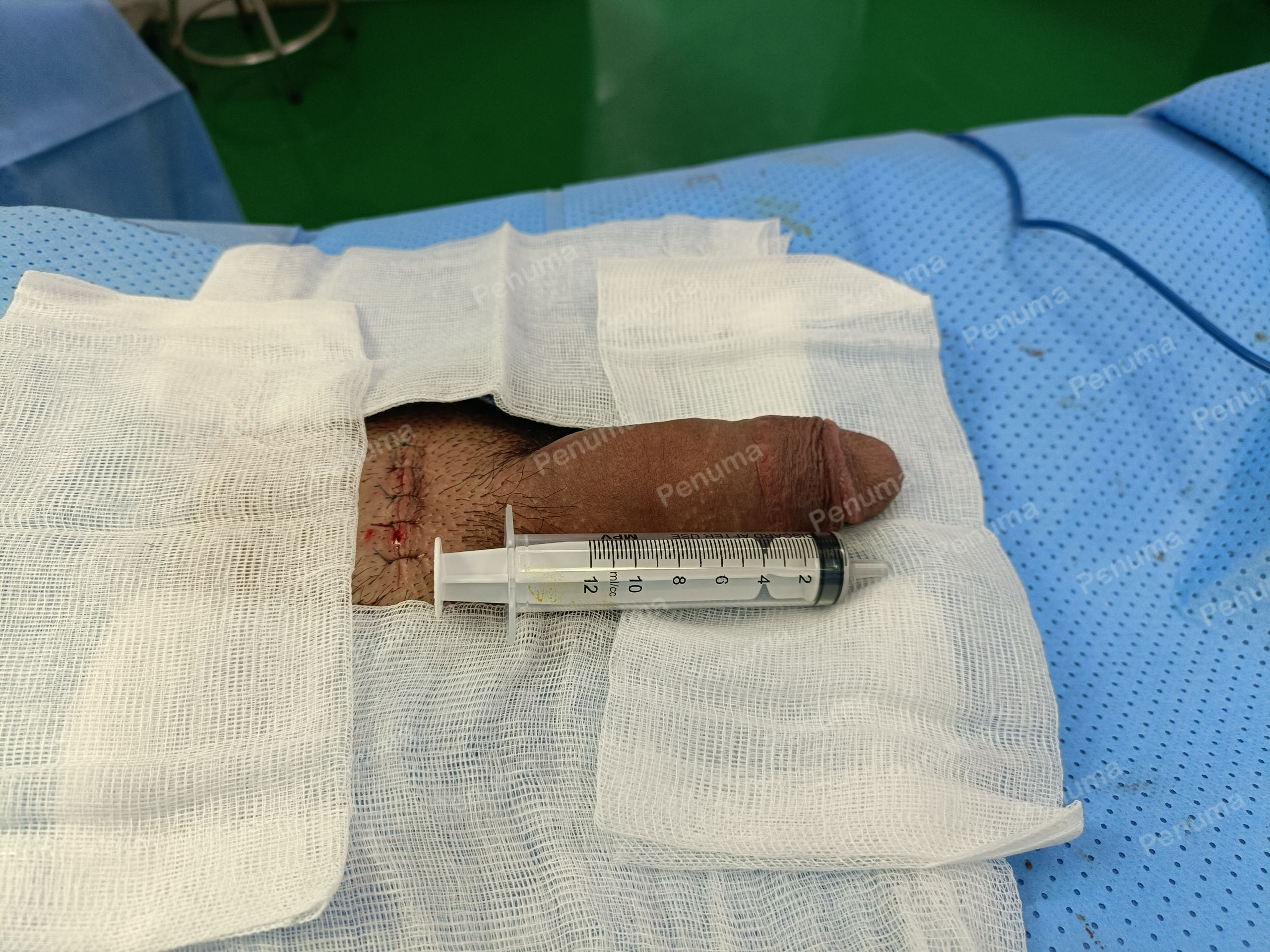 Độn dương vật bằng mô da nhân tạo, đường mổ ở mu, khách hàng 39 tuổi, HCM - ca 146