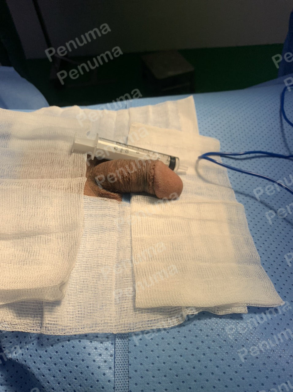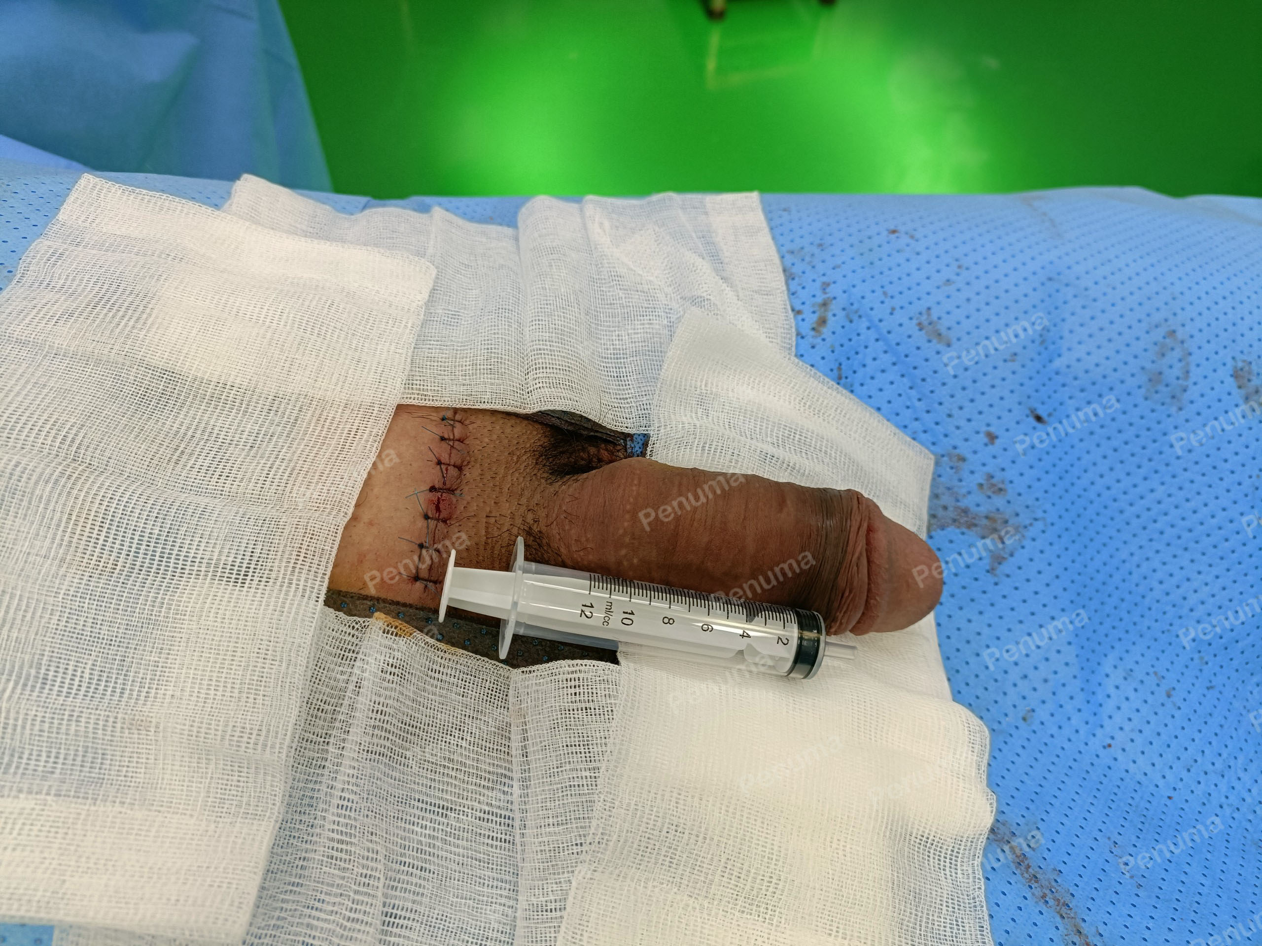 Độn dương vật bằng tấm độn sinh học, đường mổ ở mu, khách hàng 41 tuổi, HCM - ca 157