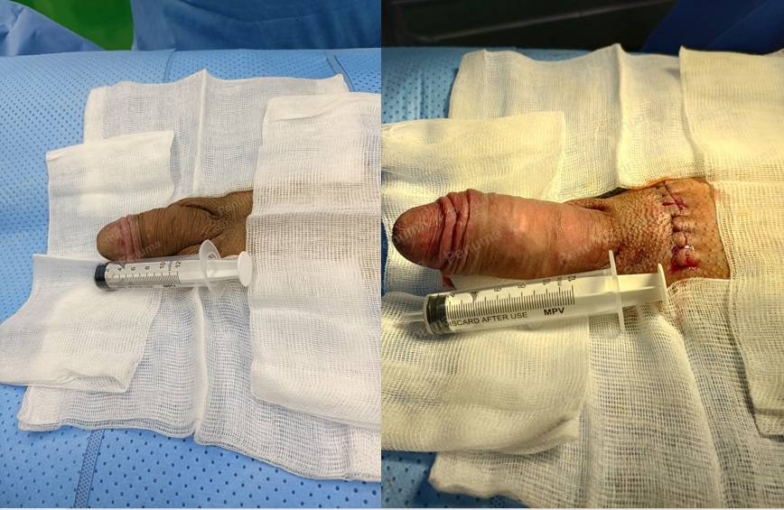 Tăng kích thước dương vật bằng mô da nhân tạo, đường mổ ở mu, khách hàng 30 tuổi Phú Quốc - ca 105