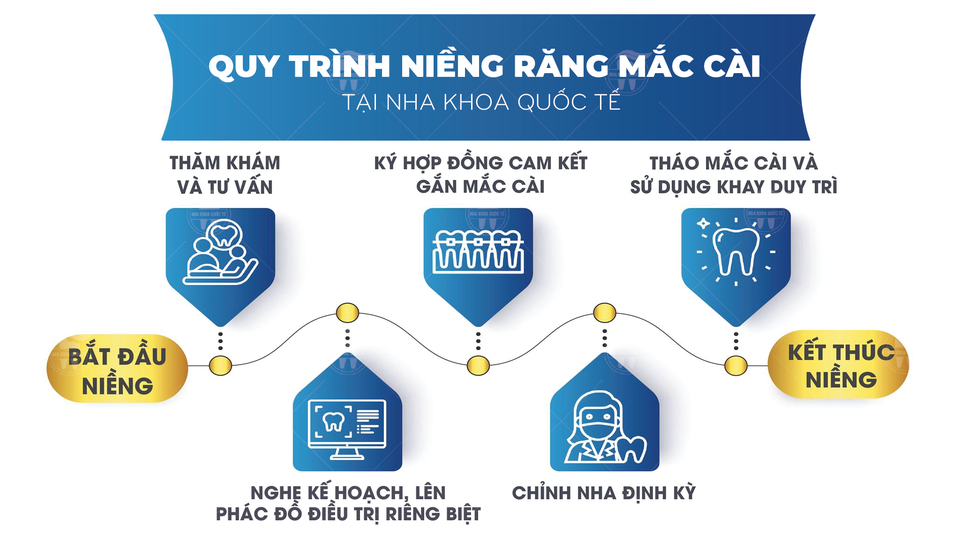 ? Bạn muốn sở hữu nụ cười đều tăm tắp nhưng chưa biết nếu niềng răng thì phải làm gì, bắt đầu từ đâu, quá trình như thế nào? Cùng tham khảo bảng quy trình niềng răng tại Nha khoa Quốc Tế dưới đây nhé!